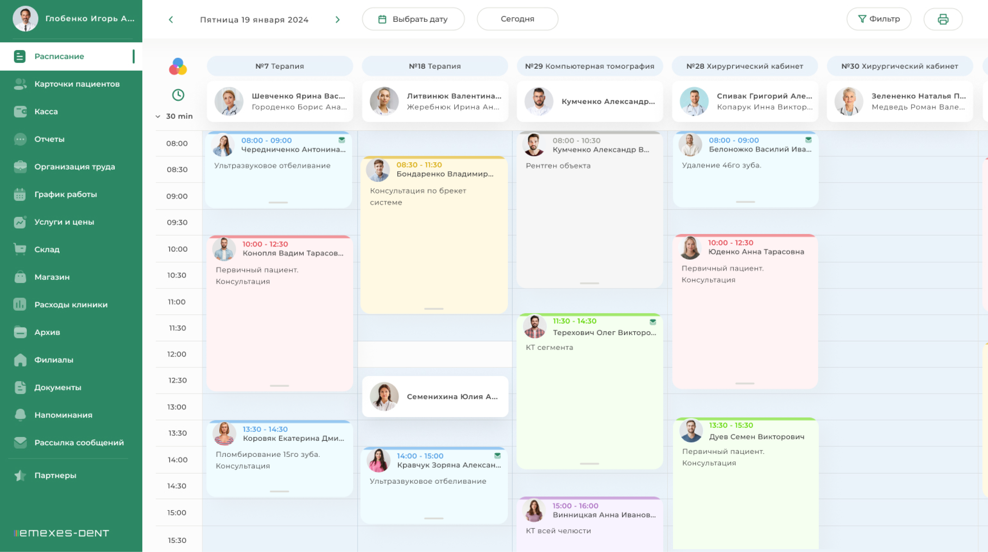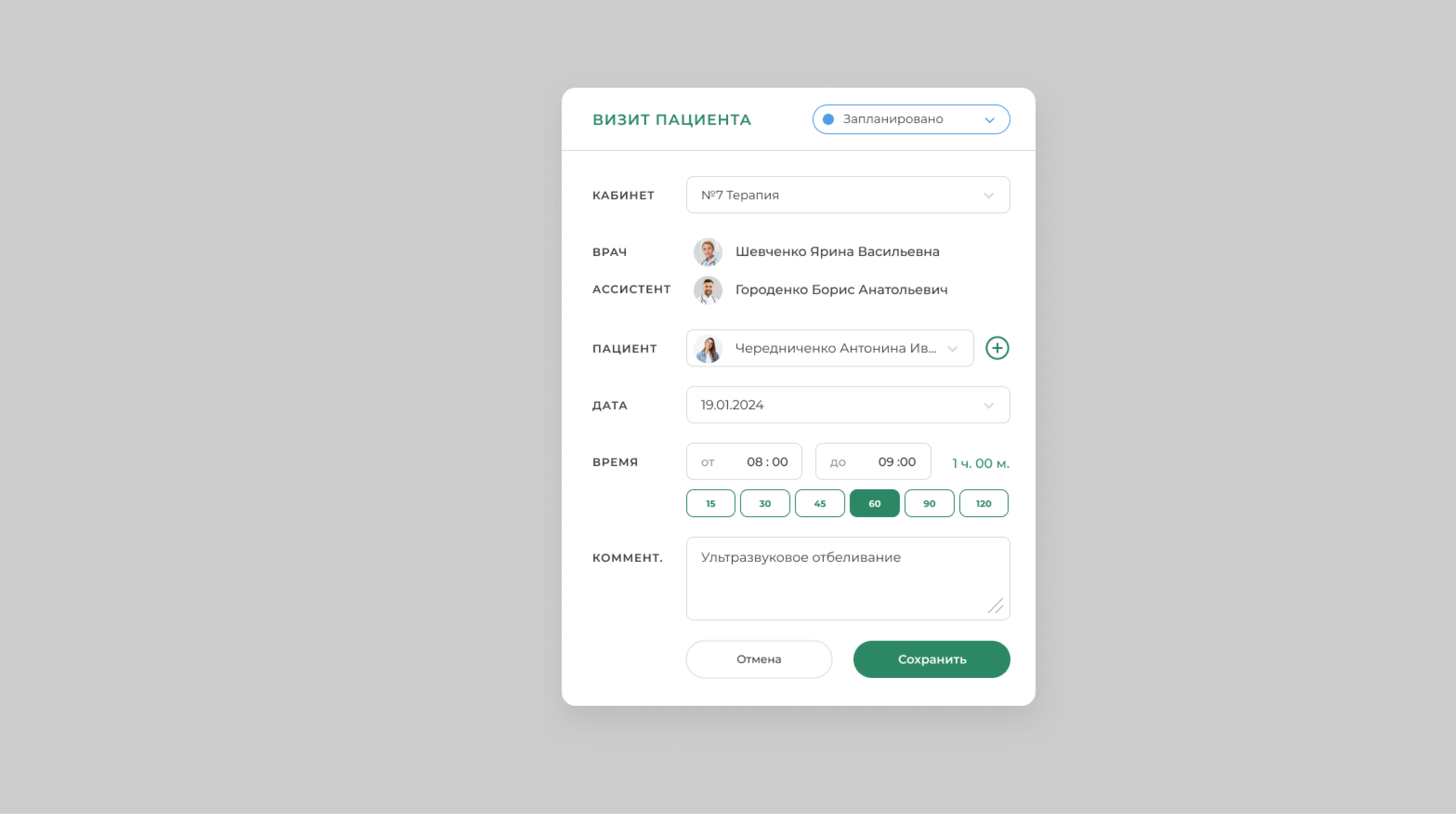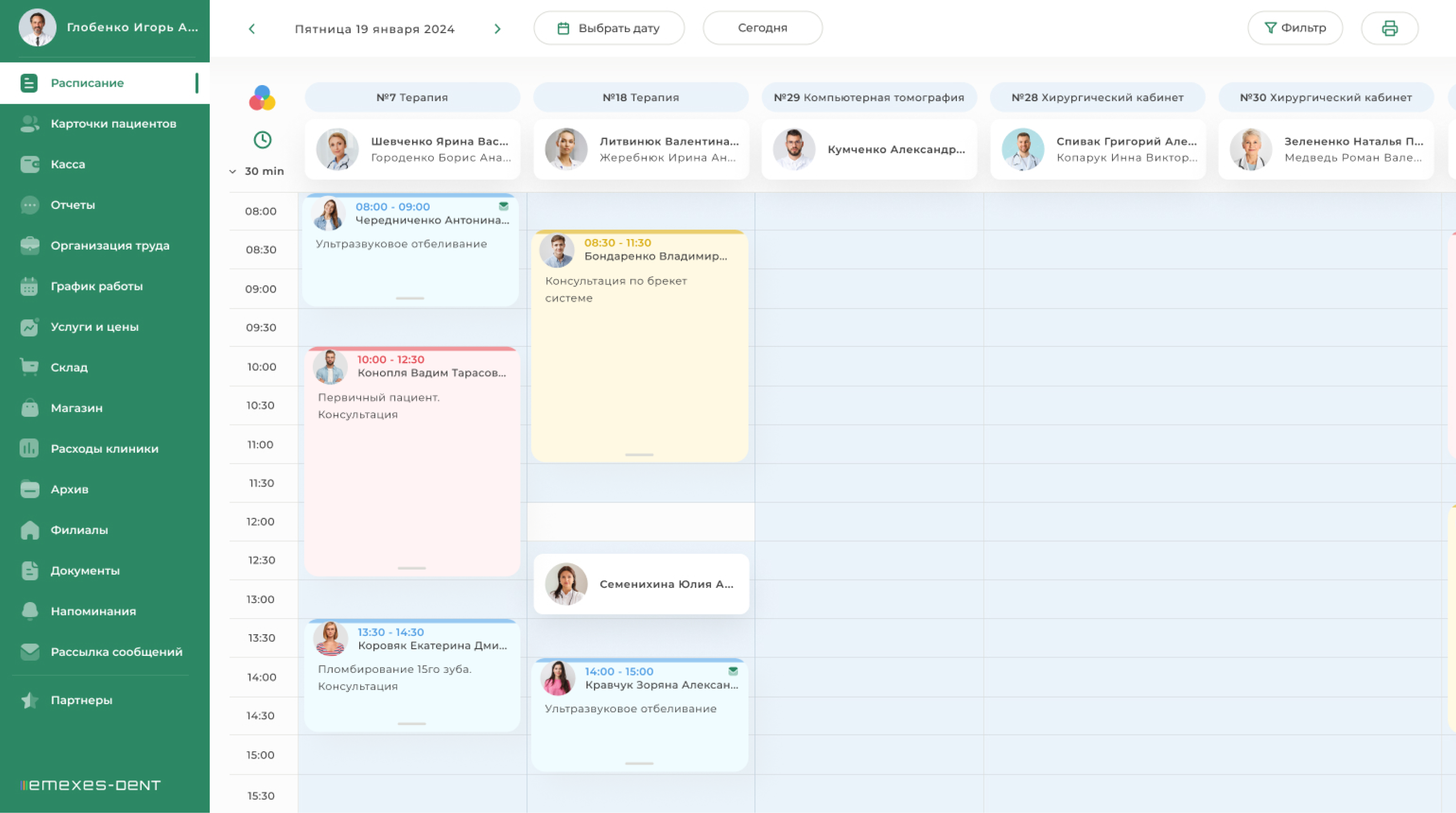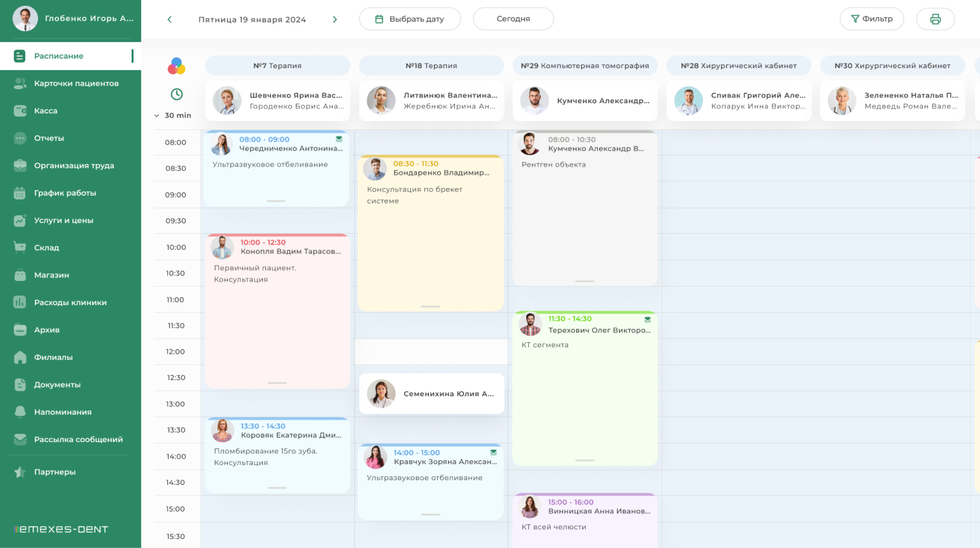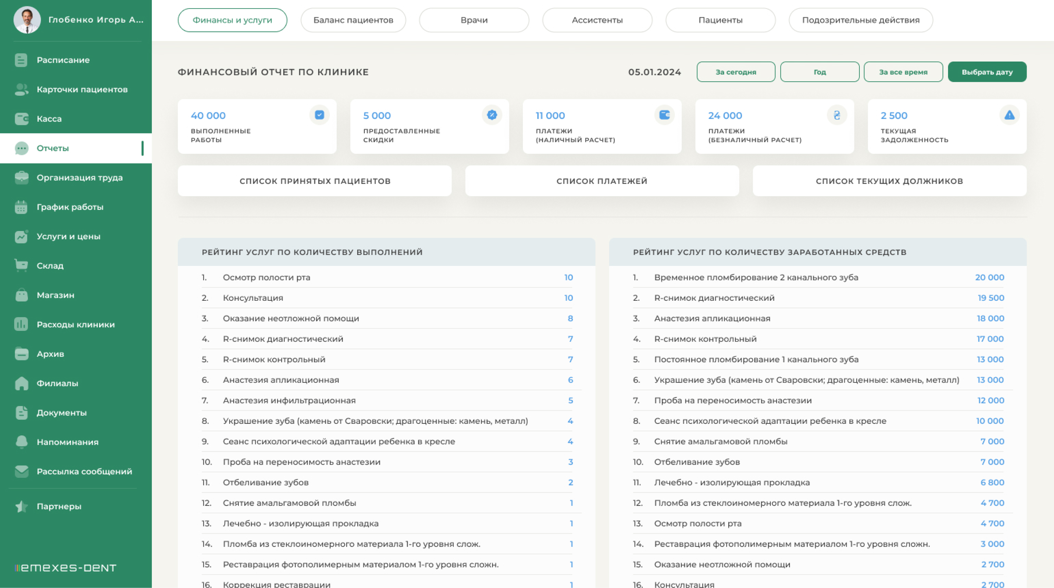 - Автоматизация всех процессов клиники: расписание, карточки пациентов, планы лечения, отчеты и многое другое