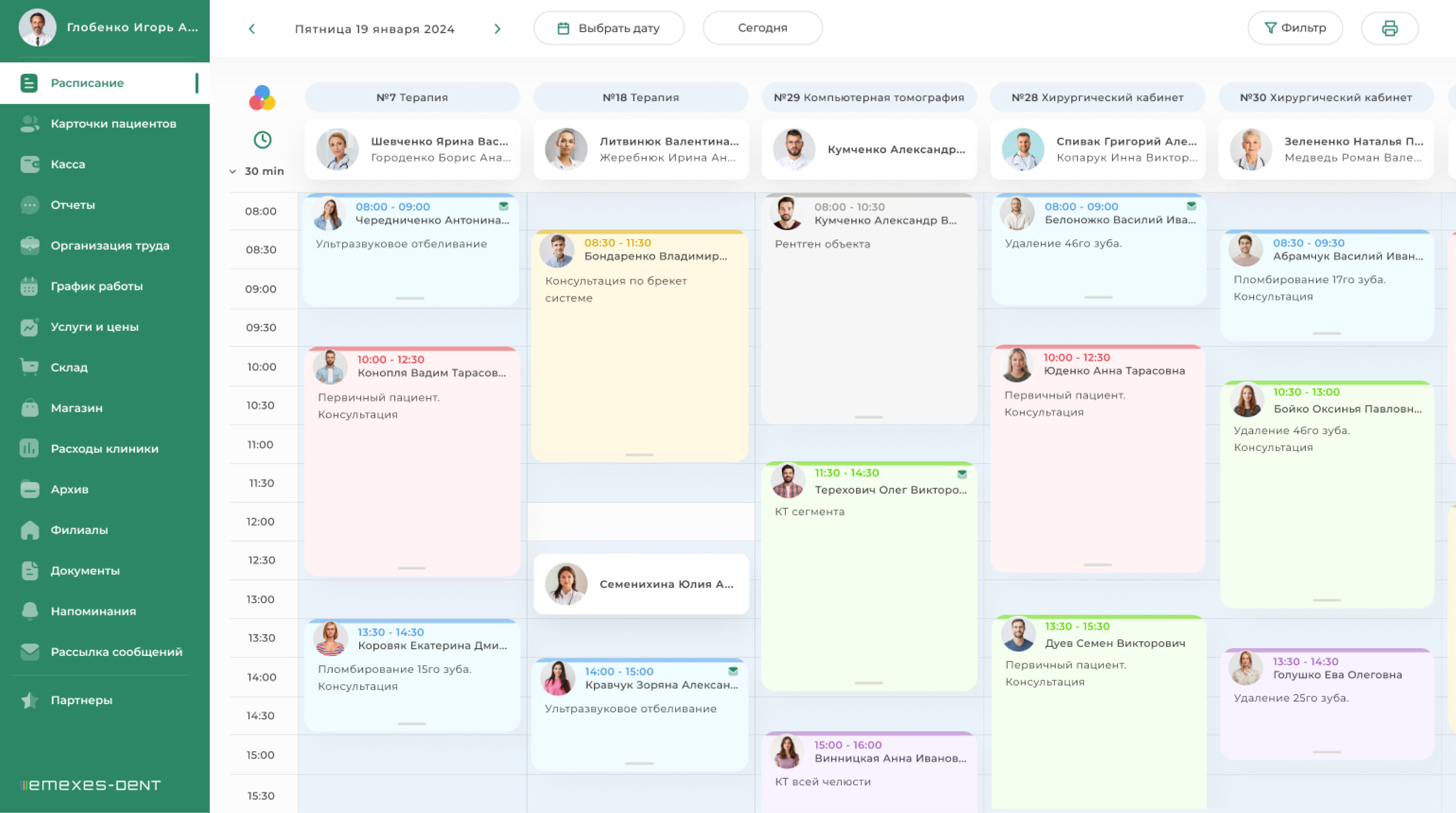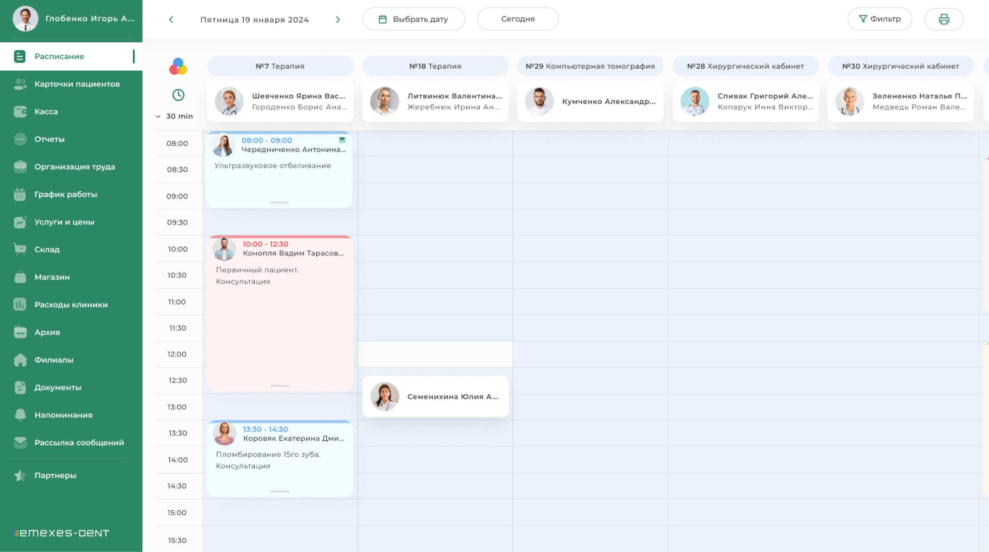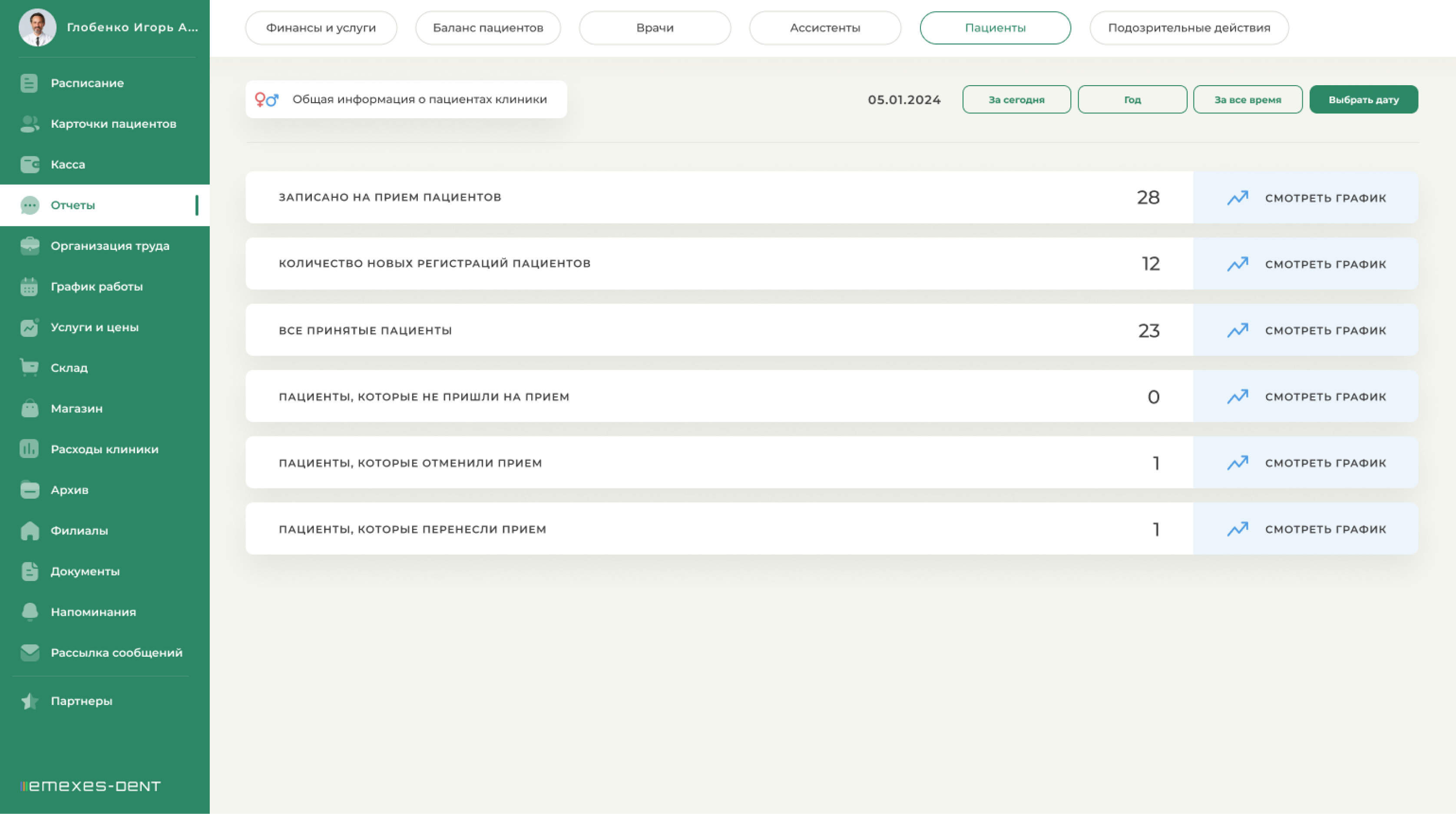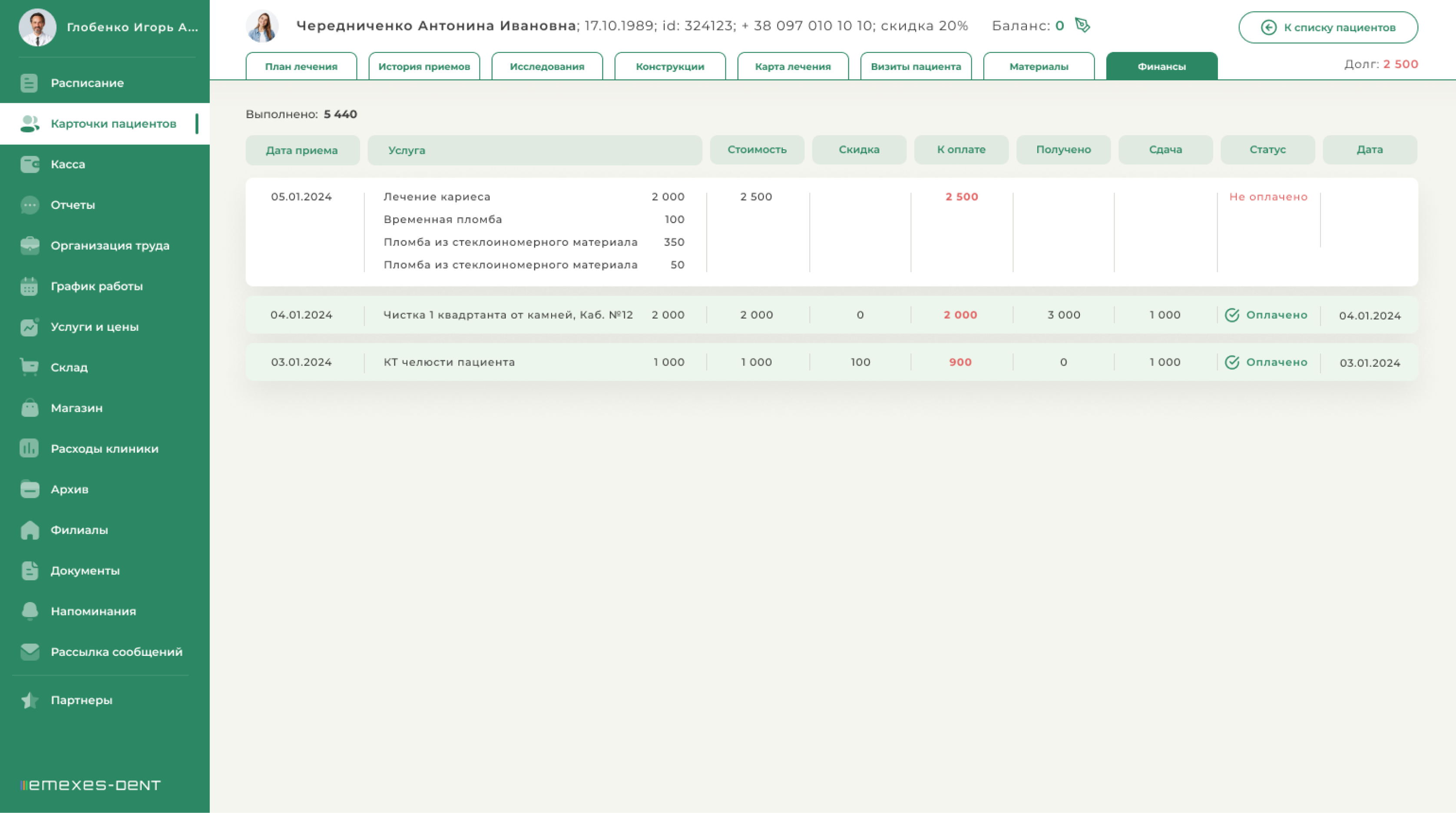- Автоматизация всех процессов клиники: расписание, карточки пациентов, планы лечения, отчеты и многое другое