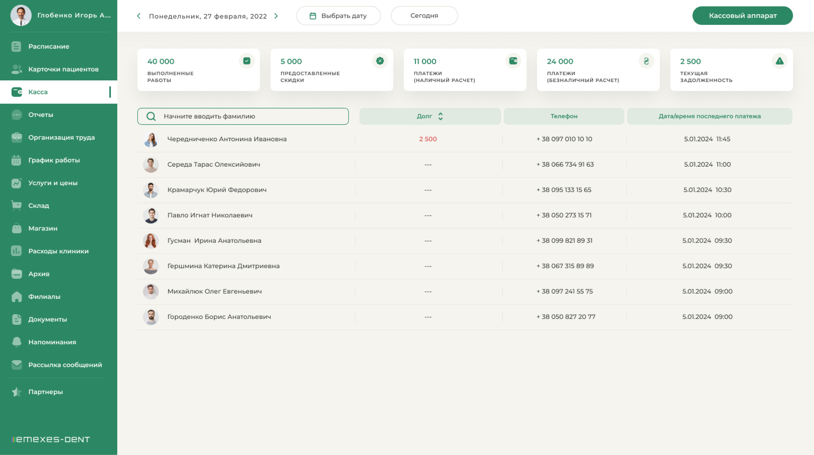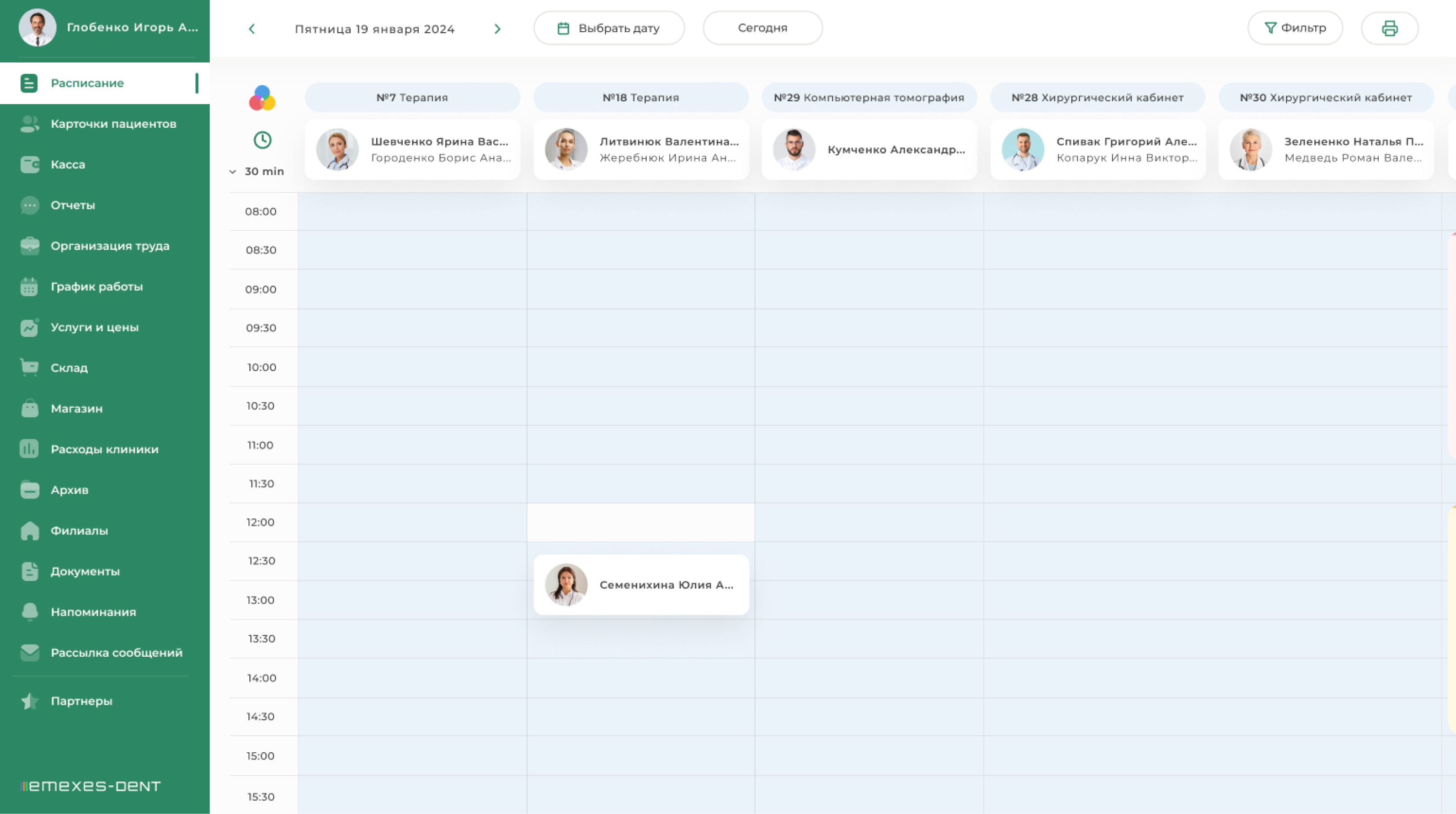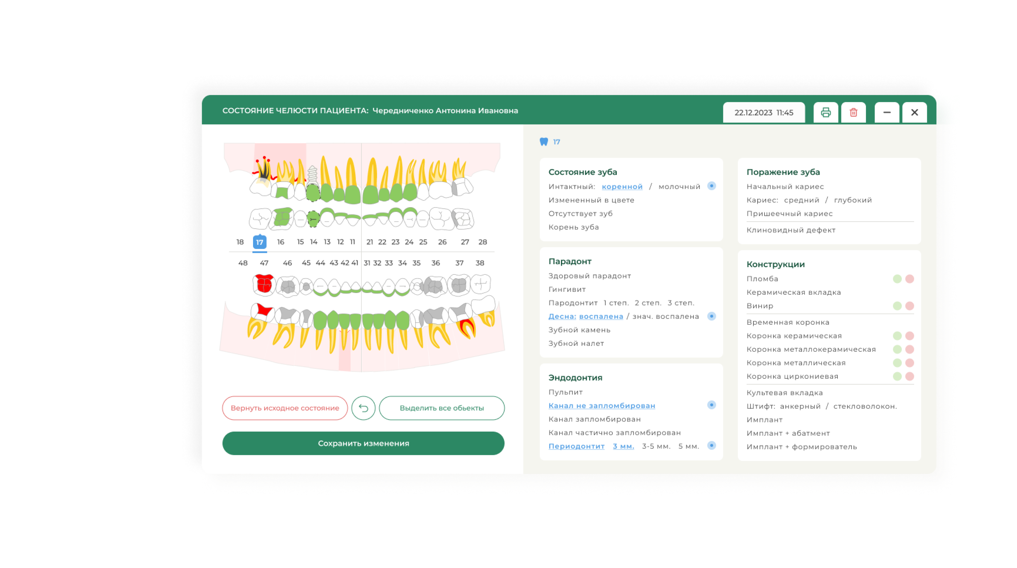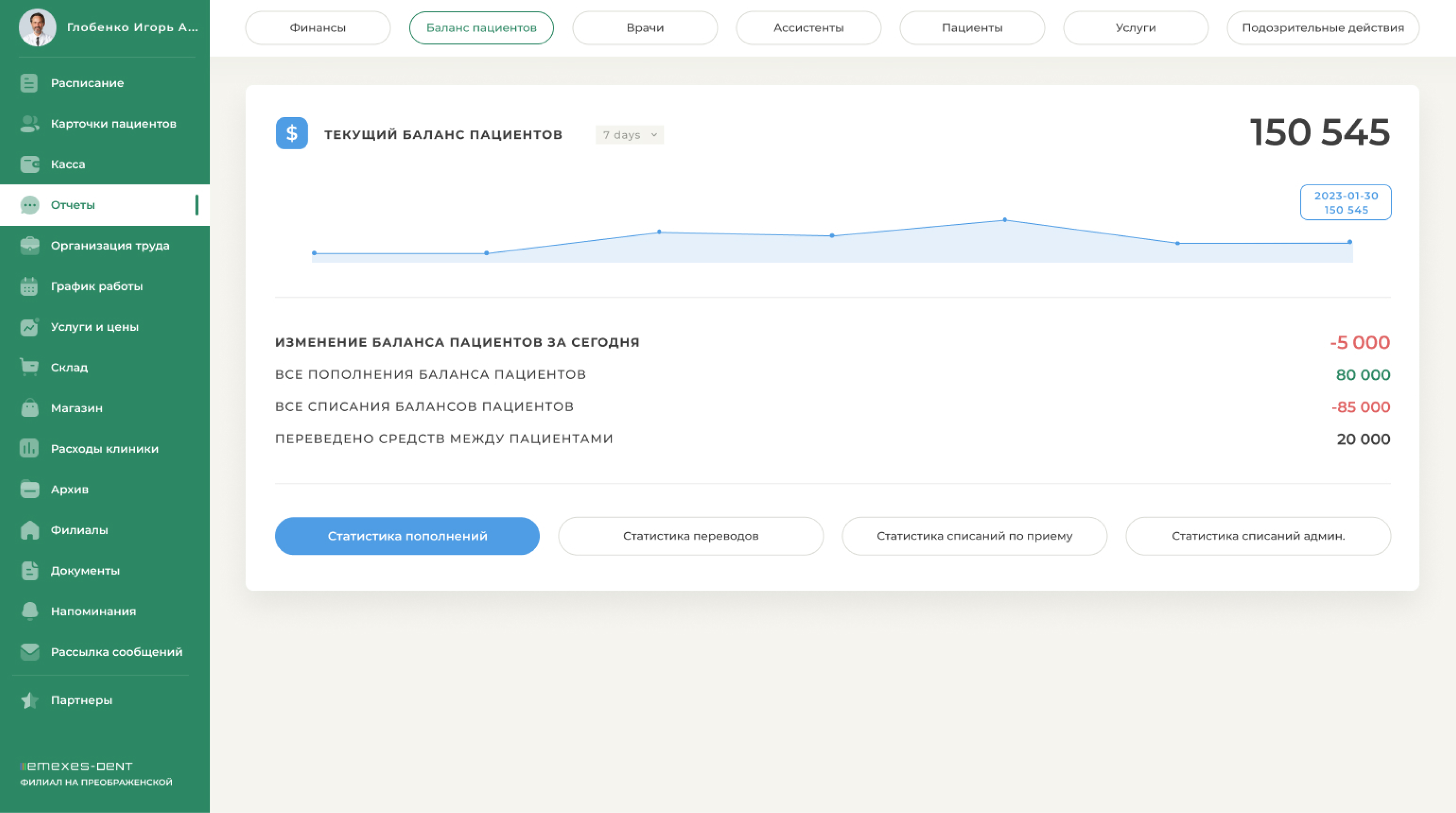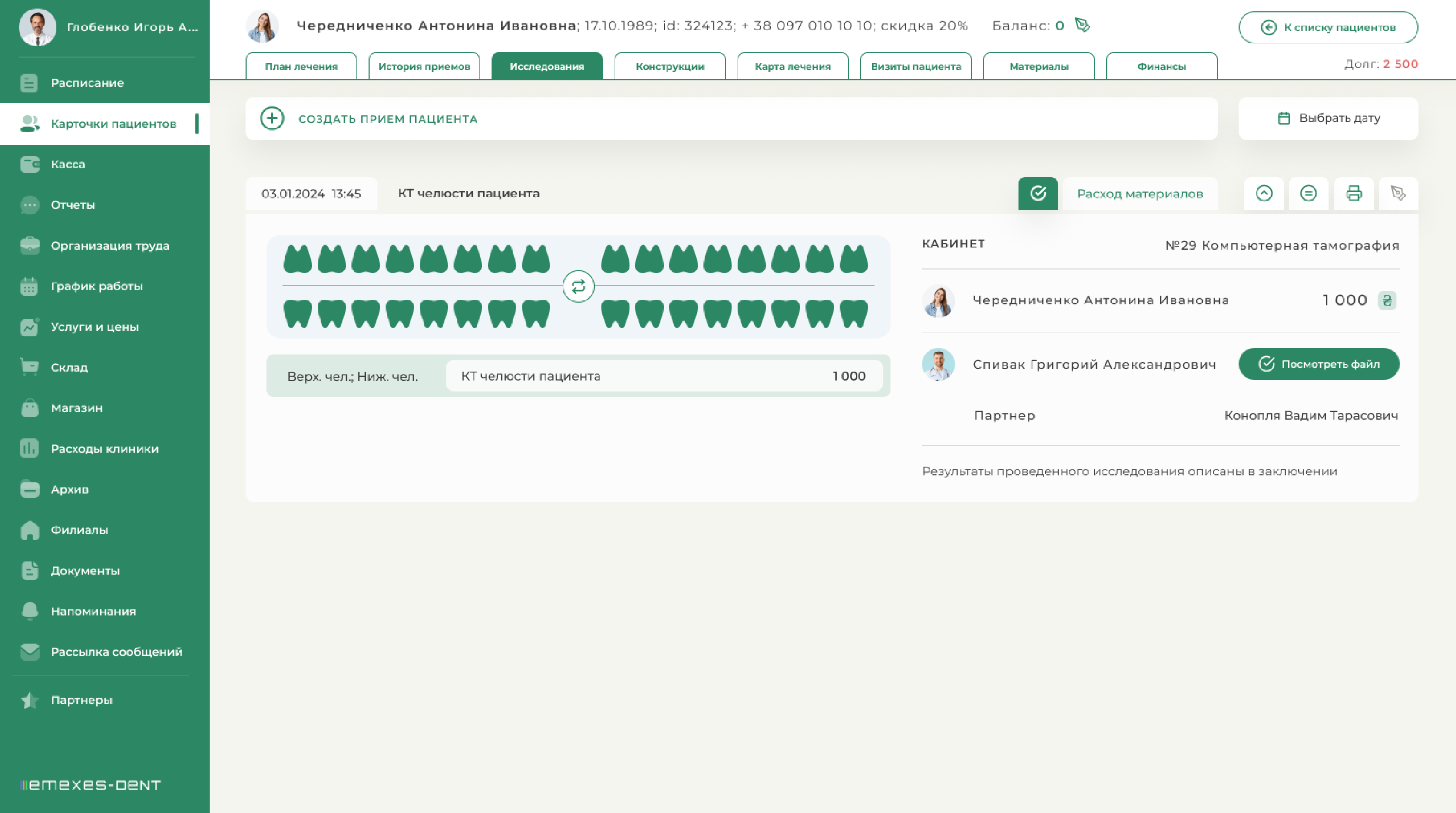 - Автоматизация всех процессов клиники: расписание, карточки пациентов, планы лечения, отчеты и многое другое
