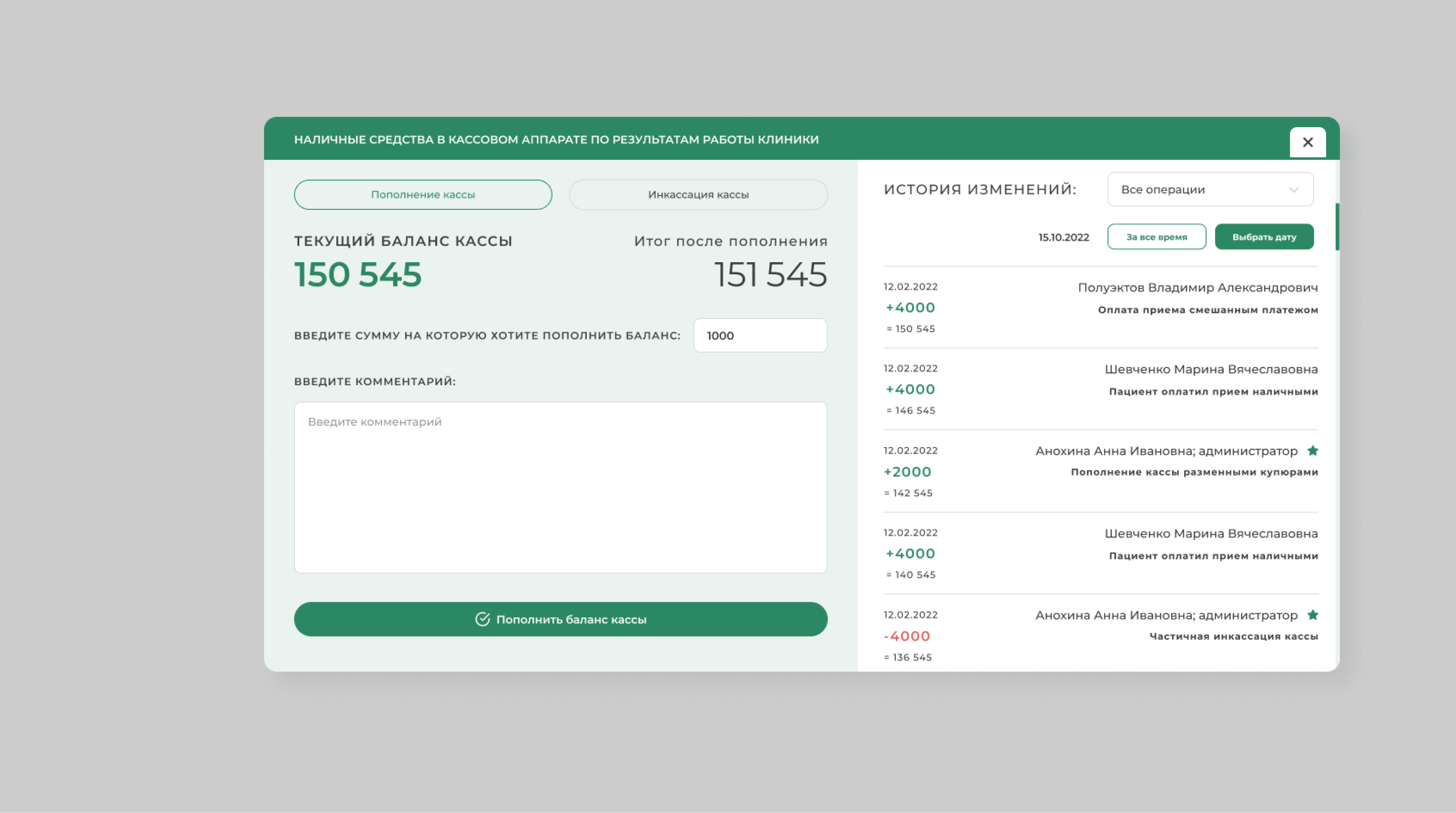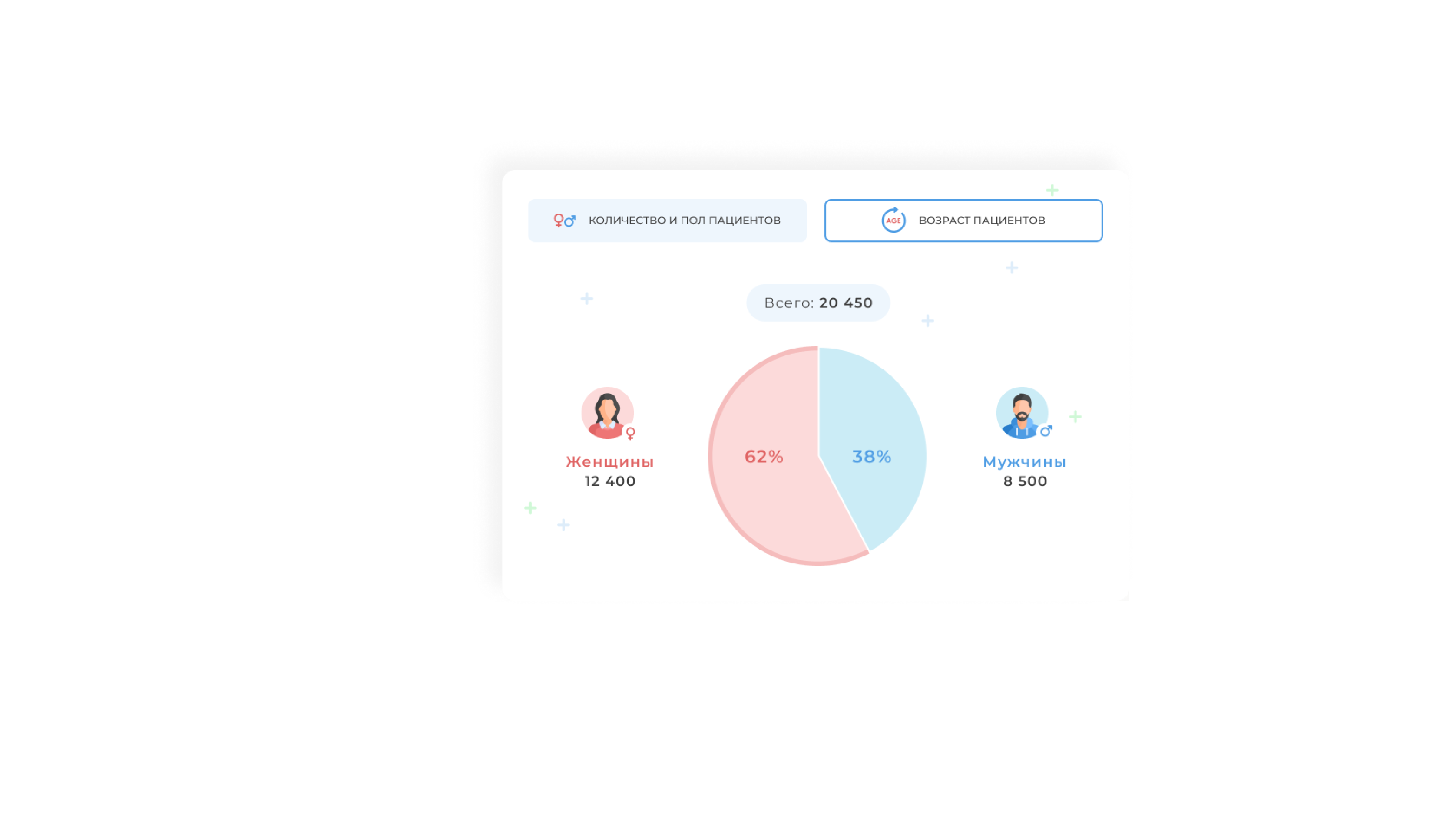 - Удобный функционал для врачей, ассистентов, администраторов и директоров клиники