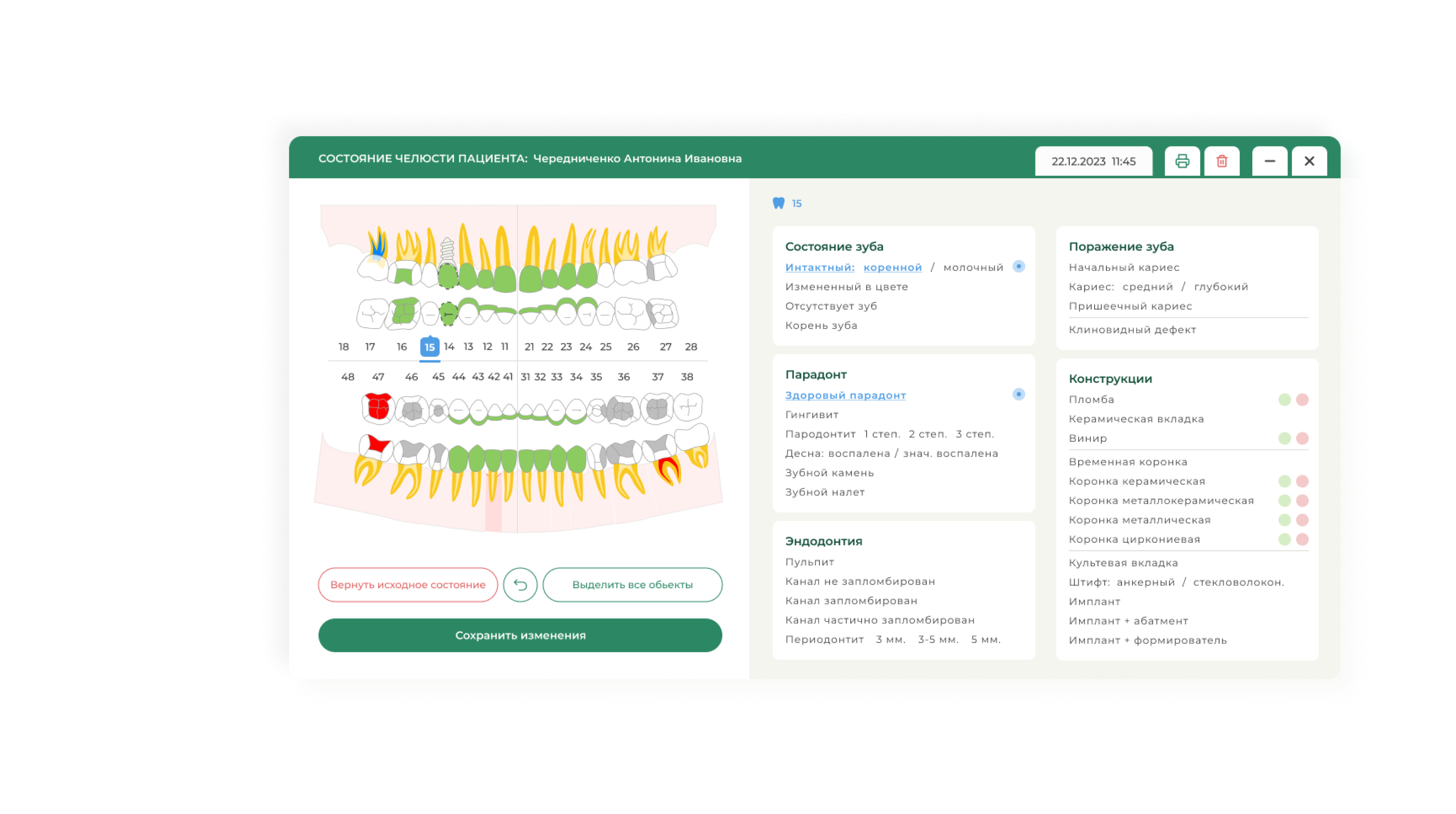 - Пример того как выглядит полностью заполненная система стоматологической клиники